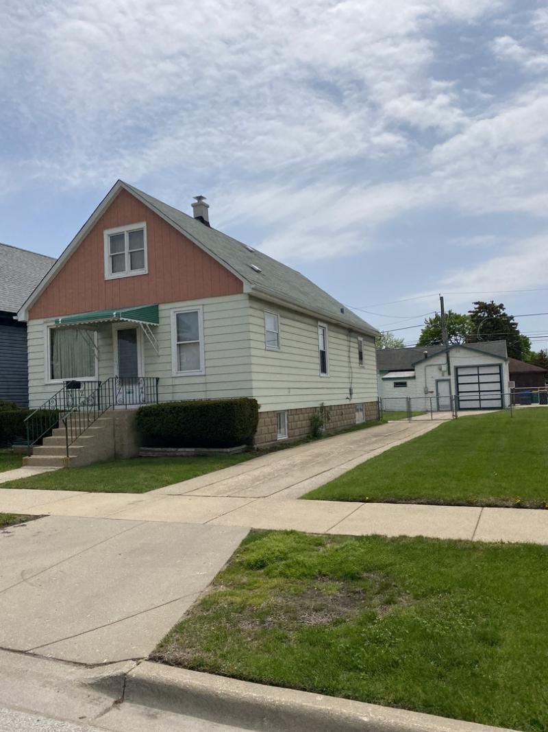Frame 1.5 story bungalow on a double lot features living room, dining room, eat-in kitchen with panty closet, two bedrooms and two walk-in closets and full bathroom on the main floor. Attic has one finished room and huge, unfinished storage area. Full basement with laundry and utility room , workshop, 3/4 bathroom and two additional rooms. Cement side driveway to huge garage / shop. Fenced in double lot. Property is sold strictly as-is with Buyer assuming all Village Compliance Repairs. Excellent potential to flip, hold and rent, or even build new.